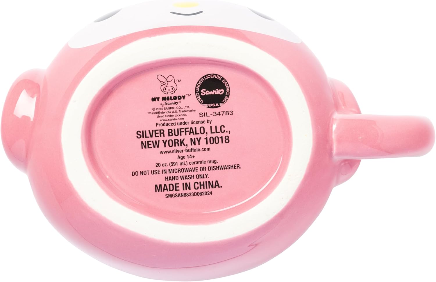 The mug is sculpted in the shape of My Melody’s face, complete with her button nose and floppy ears, making this kawaii character irresistibly adorable.