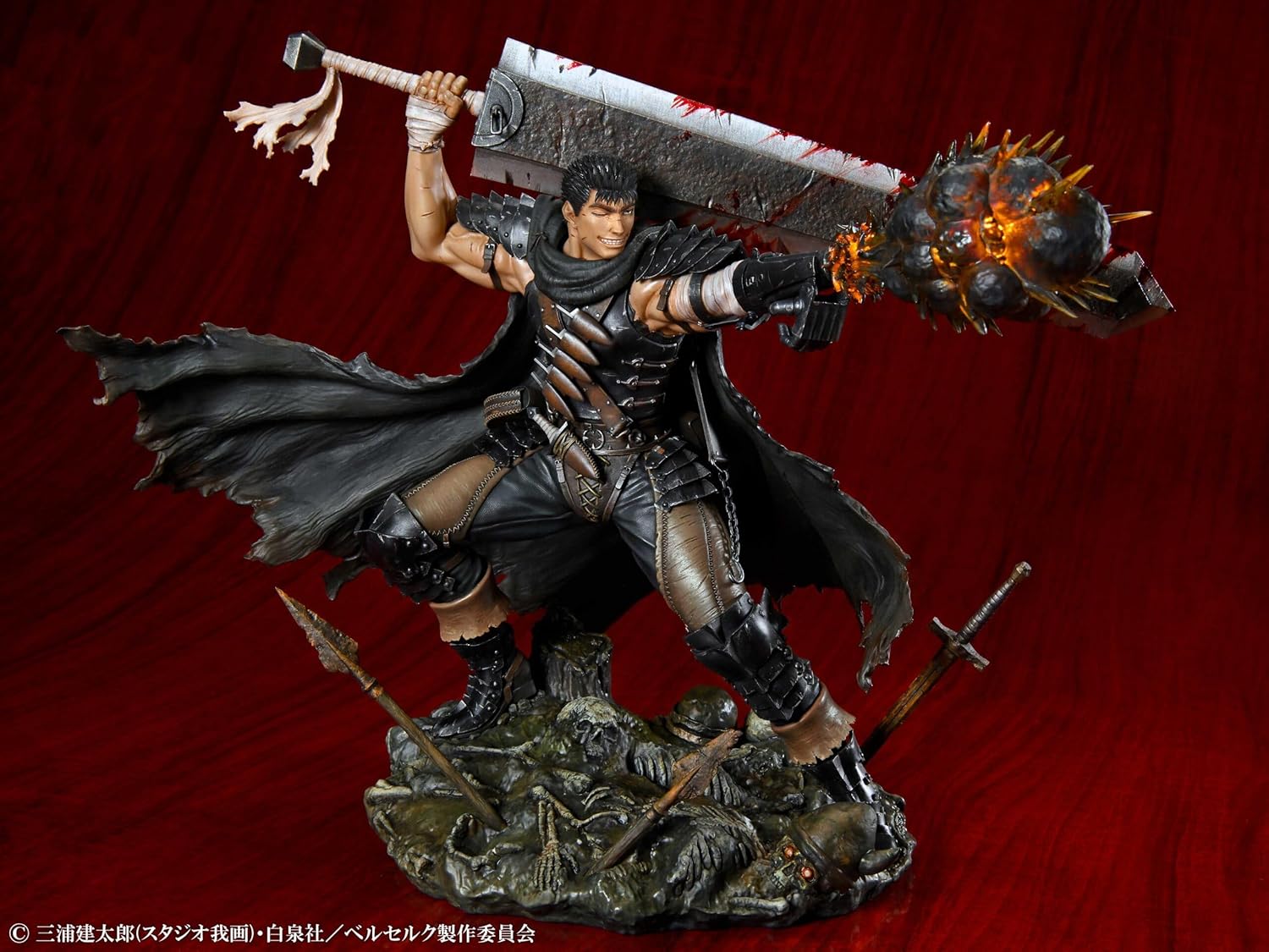 This large scale figure features the Black Swordsman Guts from the legendary series Berserk.